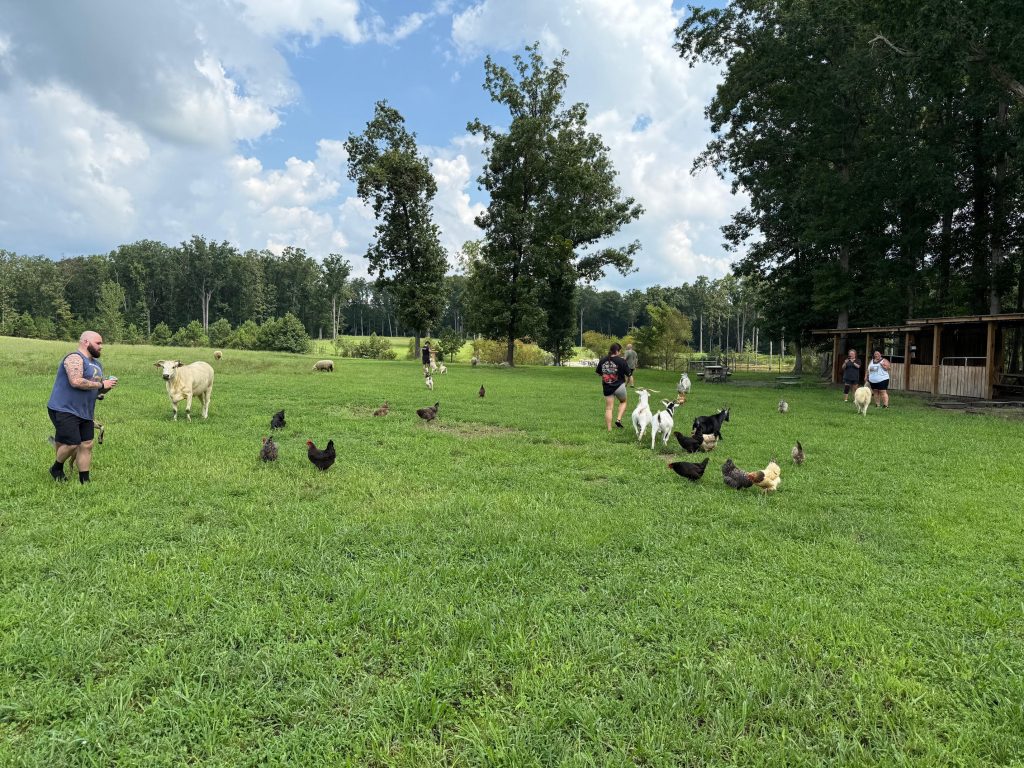 We currently offer an agritourism setting that includes wagon rides, a pet farm of Zebu Cows, Chickens, Dwarf and Nigerian Goats, Holland Lop Bunnies, Sheep, Suri Alpacas, Kune Kune Pig, and Emma the Farm dog.